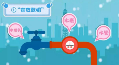 1、穿衣戴帽、提前防護:對室內外裸露的自來(lái)水管、水龍頭等用水設施,可用保溫管、保溫罩、保溫棉、棉麻織物、舊衣物或稻草繩等保溫材料,對室內外水管、水龍頭、水表進(jìn)行包扎或覆蓋,外裹塑料薄膜保溫防濕,防止室外水管凍住影響室內水管用水;水表井可用保溫材料或厚塑料膜密封保溫。背陰處的用水設施應加厚保溫。
