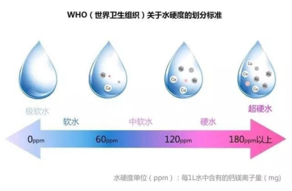 目前,沒(méi)有直接證據表明水的硬度影響人的身體健康,美國、歐盟等在水的檢測指標中未設硬度指標。并且適量飲用這些含有鈣離子和鎂離子的水是有益健康的,給人體補充礦物質(zhì)(如鈣、鎂離子),有助于人體中的活化和穩定神經(jīng)肌肉傳導的功能。